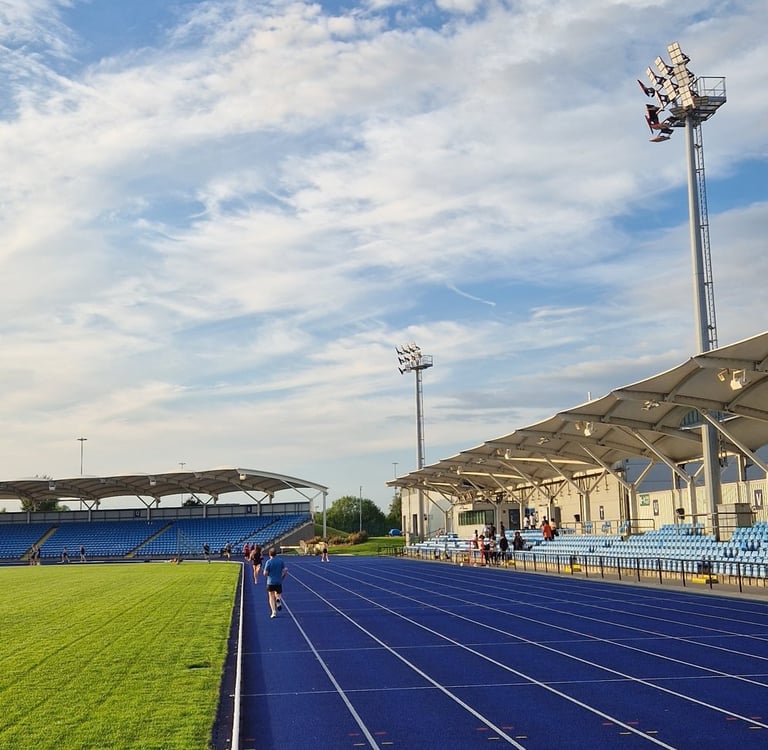 For Thursday's track session, we meet at 18:45 at the running track at the Manchester Regional Arena in the Sportcity complex ready to start the session at 19:00.